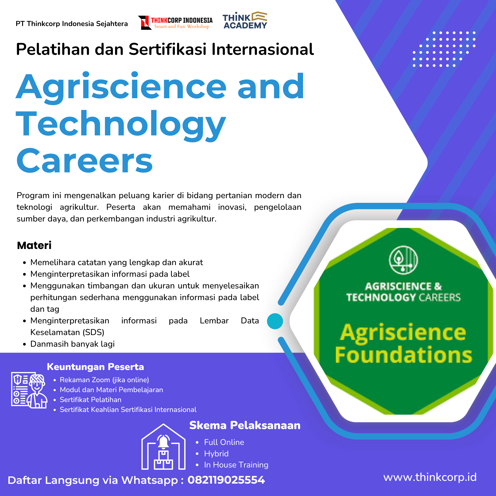 Program ini mengenalkan peluang karier di bidang pertanian modern dan teknologi agrikultur. Peserta akan memahami inovasi, pengelolaan sumber daya, dan perkembangan industri agrikultur.