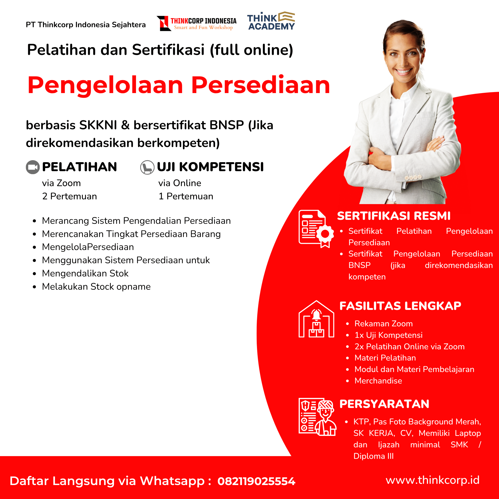 Setiap sertifikat memiliki Unique Nomor ID yang dapat digunakan untuk verifikasi keaslian sertifikat melalui website Thinkcorp.id. Sehingga peserta tidak perlu khawatir akan keaslian sertifikat dan setiap sertifikat tidak dapat di copy dengan oleh pihak yang tidak bertanggung jawab.