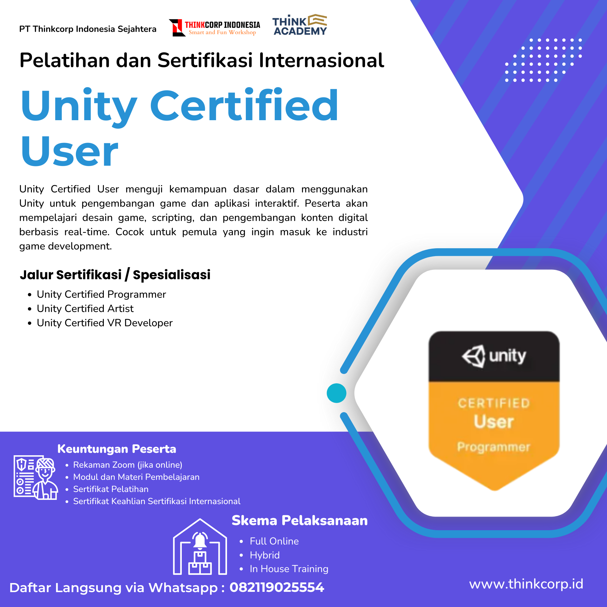 Setiap sertifikat memiliki Unique Nomor ID yang dapat digunakan untuk verifikasi keaslian sertifikat melalui website Thinkcorp.id. Sehingga peserta tidak perlu khawatir akan keaslian sertifikat dan setiap sertifikat tidak dapat di copy dengan oleh pihak yang tidak bertanggung jawab.